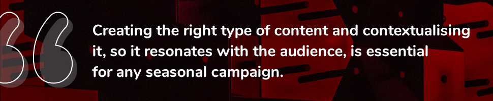 Creating the right type of content and contextualising it, so it resonates with the audience, is essential for any seasonal campaign. For Black Friday, think about the associated content you put out (whether a mailer or a social post) and if it benefits your brand or if it may just get lost in the noise. Black Friday is a lot of noise – and the bigger brands have capitalised on it by making it a month of deals instead of just a day; they can own that space and potentially your target market, too.
